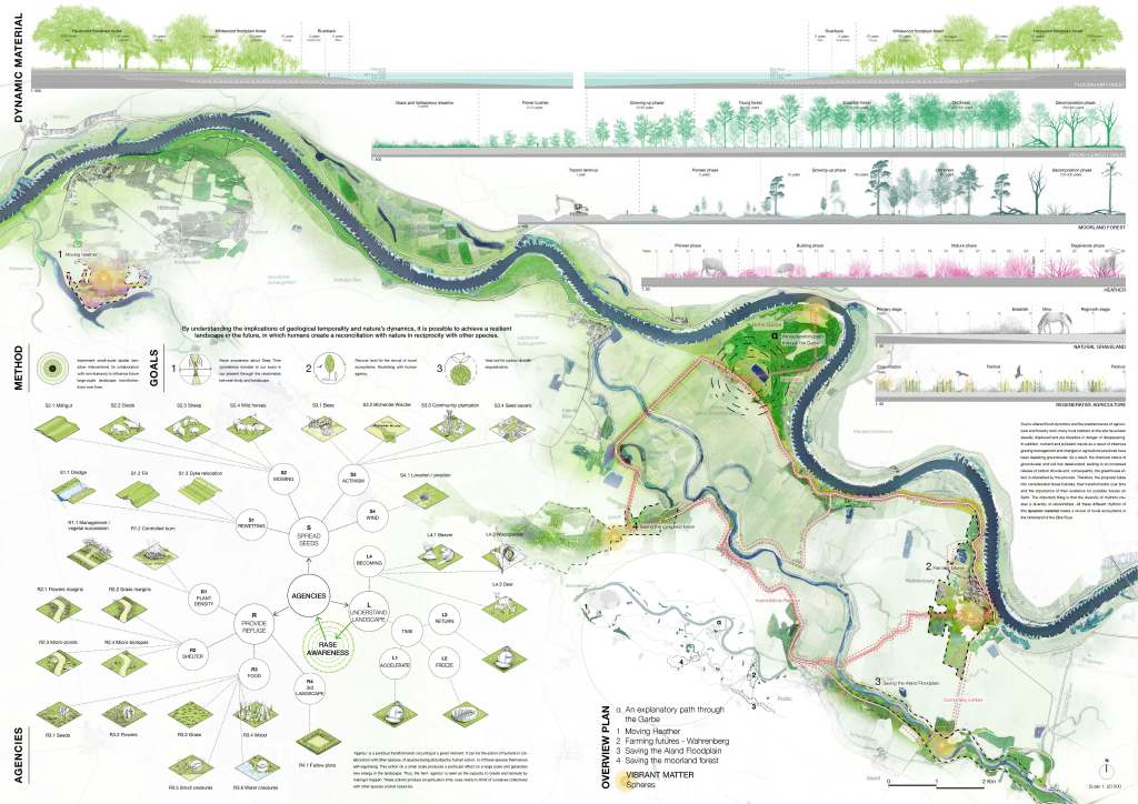 The Master’s thesis “Designing with deep time, the Hinterland of the Elbe River” highlights the essential role of being aware of geological temporality (Deep Time) and natural processes in order to conceive new landscape transformations over time.